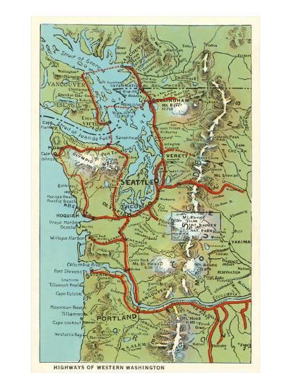 Map of Western Washington Art Print by | Art.com WA Repro Map of a 1920 pc | Attitude, Attention, Attire Aced .